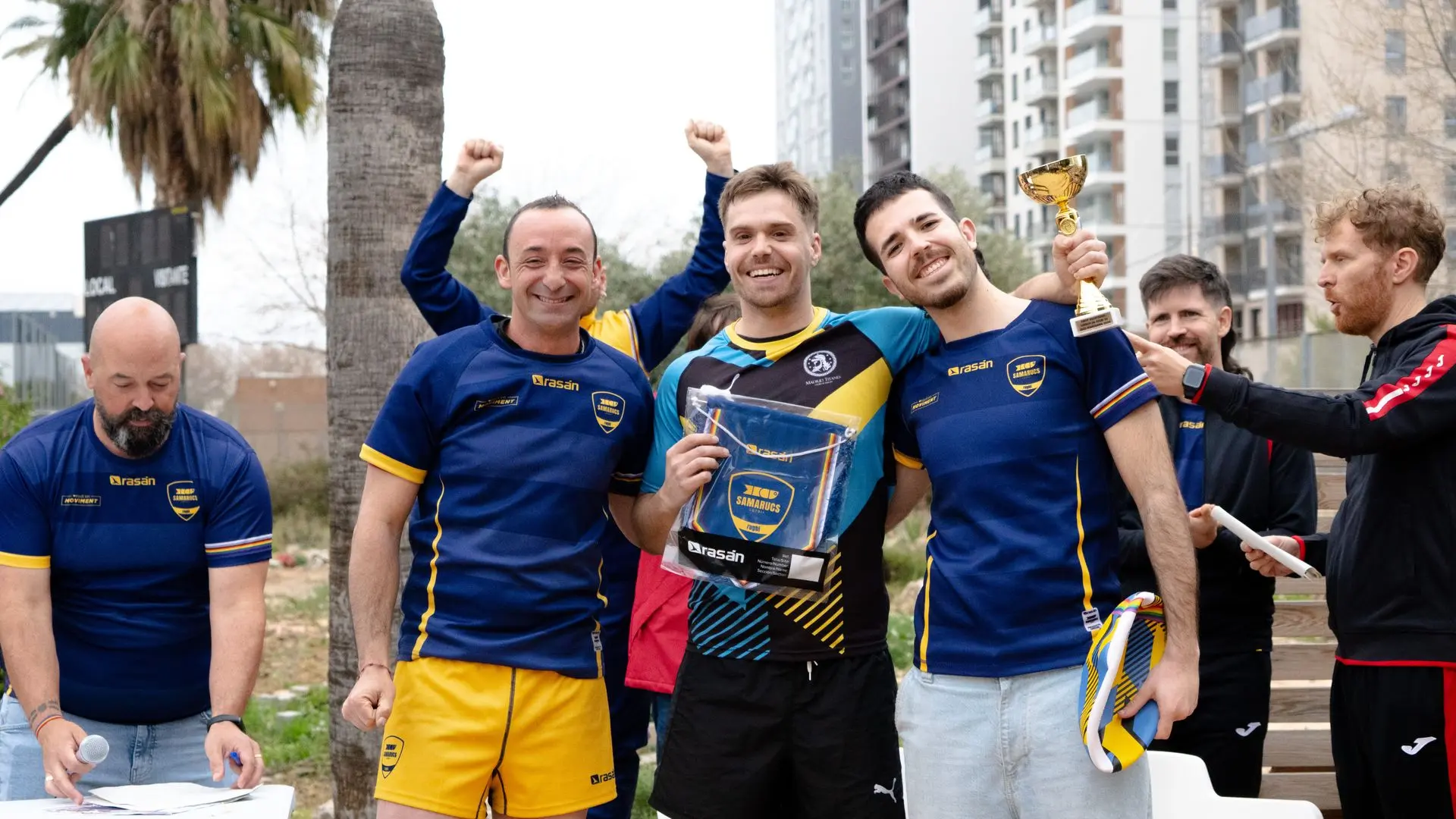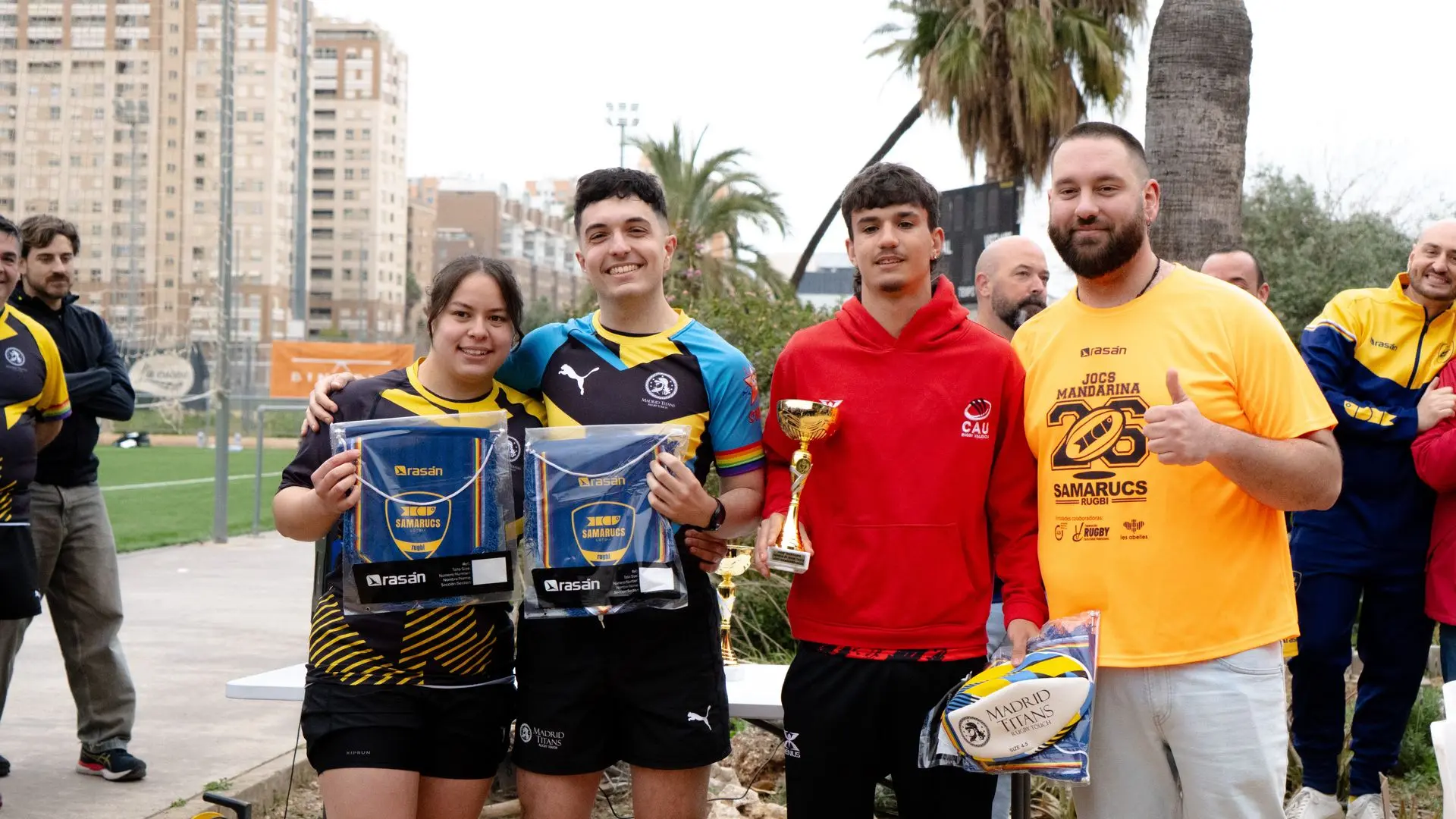 Sábado por la mañana, llegamos al campo y se comienza a notar el ambiente deportivo. Nuestros equipos de Touch (las Javas y la Rachetas) comienzan a calentar, mientras XV los anima, nuestros supporters van por agua y el resto comiendo mango deshidratado. Después dos partidazos de touch llenos de toques, caídas y sobre todo mucho sueño comienza a jugar XV y pasamos a la Final. Después de este partido era el turno de nuestros Brutanes y lo hicieron especialmente brutal (como siempre), Titanes y Touch apoyando a nuestros niños como buen equipo que somos. Termina el partido y toca el duelo definitivo, nuestras Rachetas se enfrentan a nuestras Javas… hubo caídas, hubo bajas, hard touches, peor sobre todo se mostró todo lo que se ha aprendido a lo largo de la temporada. Termina el partido y nuestros Brutanes vuelven a devorar contra Samarucs, placajes, ensayos, touch, meles y mucho grito… Llega el último partido, la esperada final: Titanes contra Panteres.¿Resultado? Ganó el rugby. Pero la copa se la llevan los Titanes. Un atajo de fotos, gritos, sudor, cansancio y sobre todo mucha, mucha ilusión por llevarnos la copa a casa como equipo, como familia que somos. Después del torneo una paella, una cerveza fresquita y un dulcecito para luego una siesta como una catedral y así estar listos para la noche tan espectacularch que se esperaba donde se dieron premios a los MVP de cada equipo. Por el lado de Touch, fueron Anto y Javi; y, por el lado de XV, nuestro querido Dani Gil. Devoraron, sirvieron y repartieron. Punto y se acabó en la cena. Después de un copeo tontorrón en ese lugar tan espectacular nos dirigimos a la fiesta del torneo. El final de la noche no podemos saberlo con certeza…