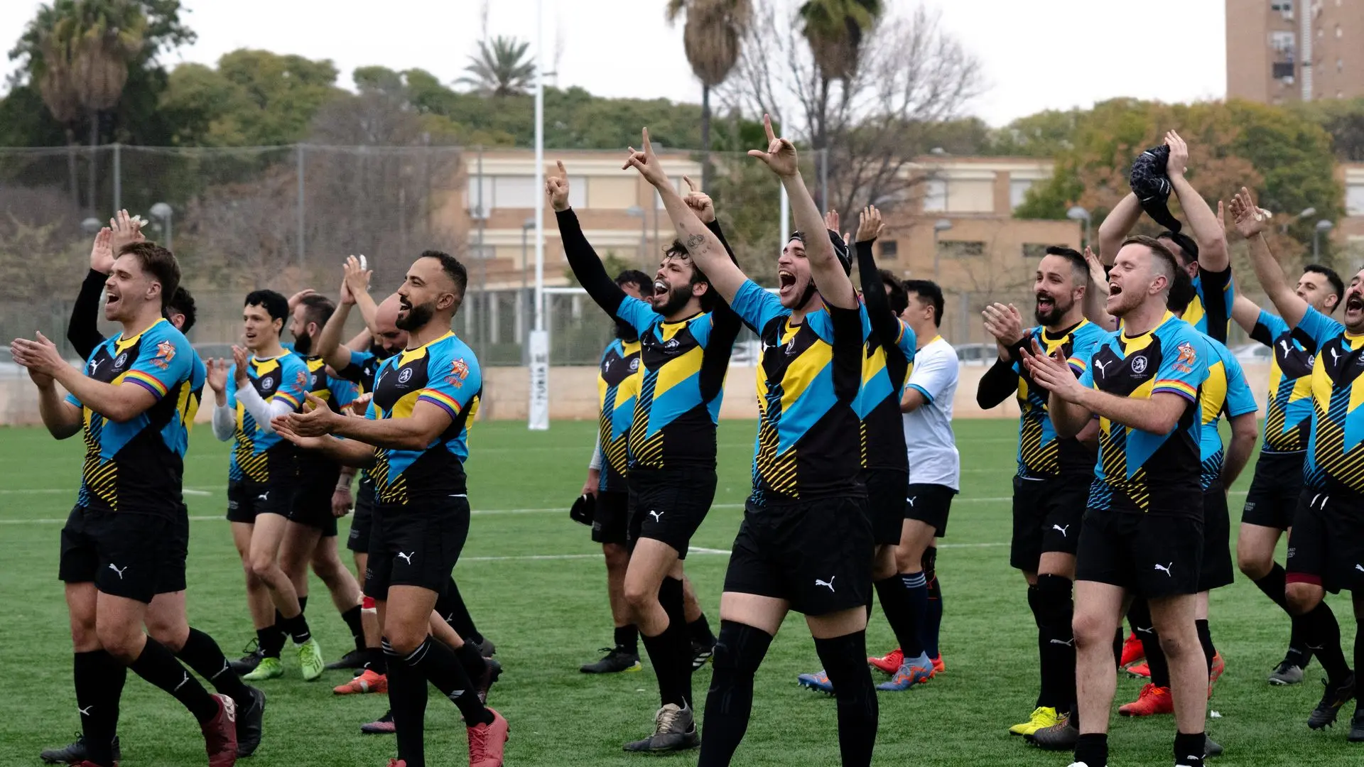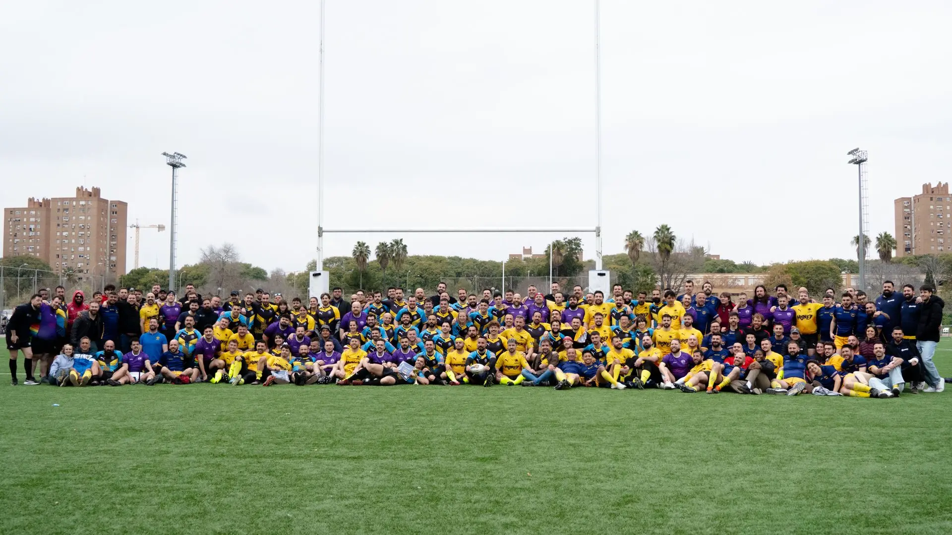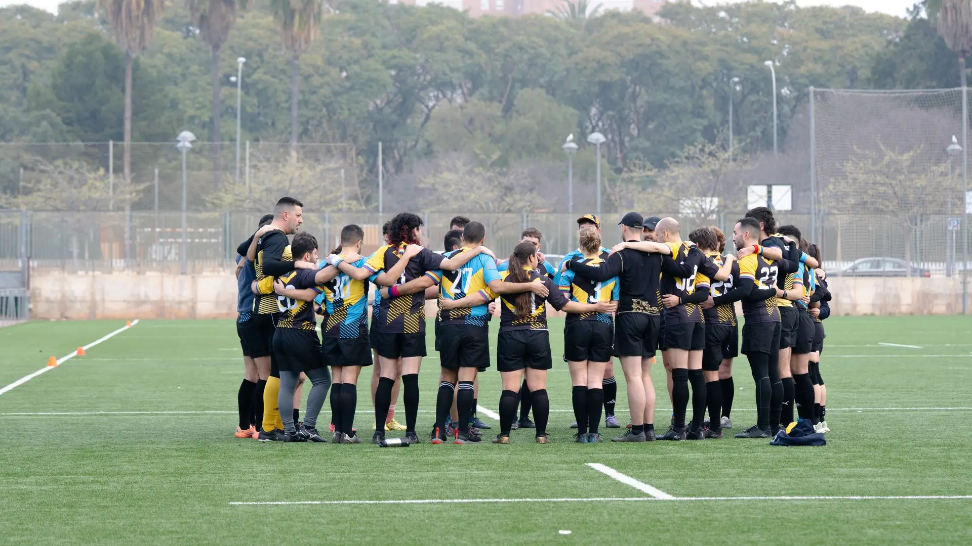 Comencemos el viernes, cuando todes madrugamos desde bien temprano para irnos a 2 horas en Ave y 4 en coche hasta Valencia con la intención de ir a un torneo en el que Touch y XV compartiríamos momentos, risas y cómo no: Ganar (home no). Algunos llegaron por la mañana y como buenos turistas madrileños en tierras valencianas decidieron ir por una paella y una horchata tontorrona. Un tercer tiempo improvisadísimo con el resto de equipos, dio pie a conocernos, ponernos cara y compartir momentos alegres y muchas charlas productivas. No hubo piques, no hubo ataques, no hubo golpes bajos (en absoluto), aunque ya se respiraba el ansia por el sábado, por jugar, por placar y por estar en el juego. Ya se pensaba en cómo jugar al día siguiente y qué técnicas utilizar. Y, por otro lado, nuestros brutanes (mitad Bruisers, mitad Titanes) pensando en cómo entender a los de Berlín en el campo y si jugarían en las posiciones en las que habían entrenado. La noche acaba con nuestra querida cena titánica y la categoría era… “Titanes Shore” en honor a la Valencia de los 2000 donde algunes titanes D-E-V-O-R-A-R-O-N con sus looks.