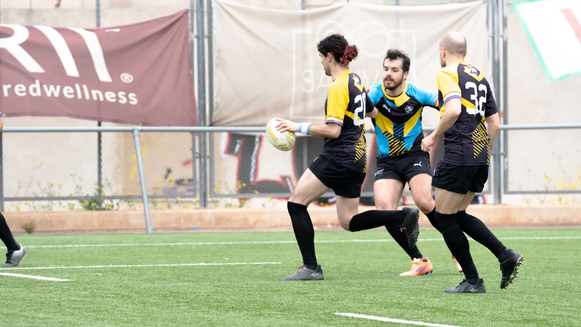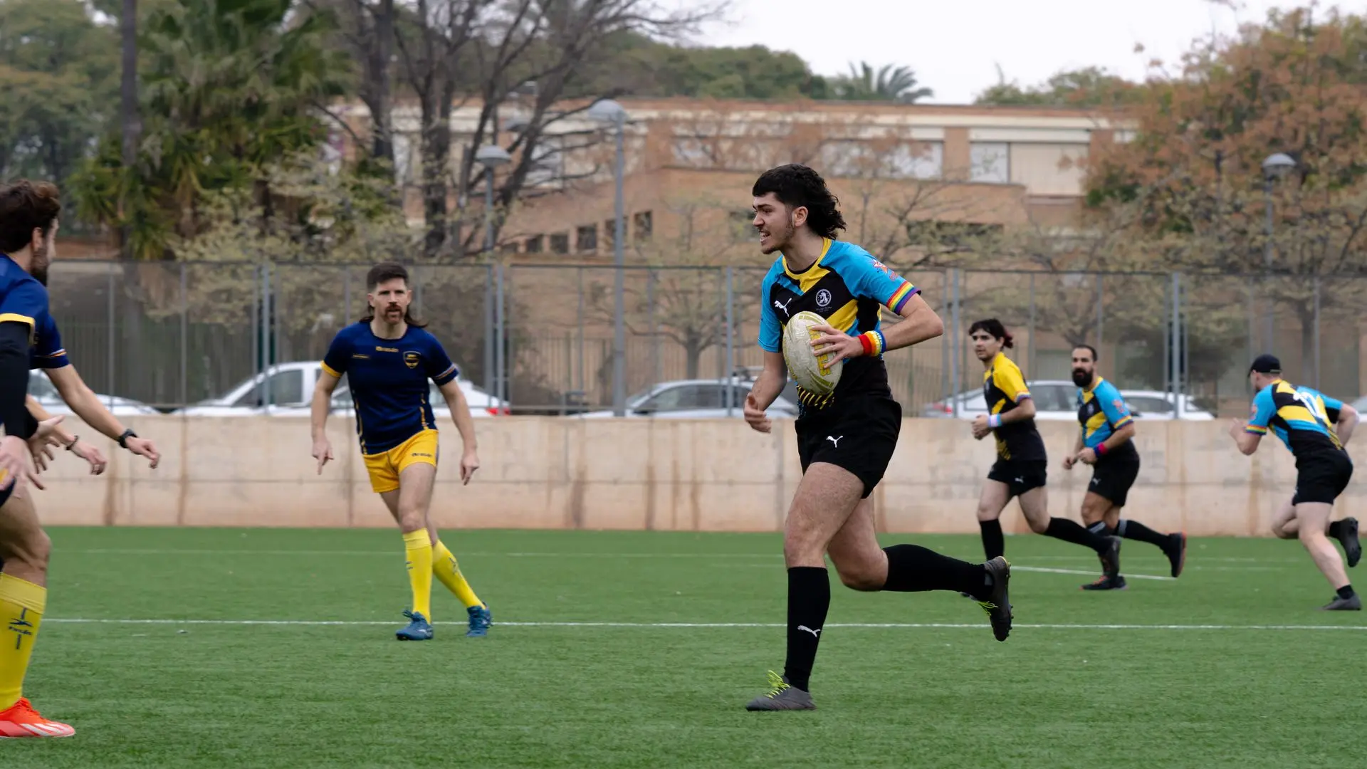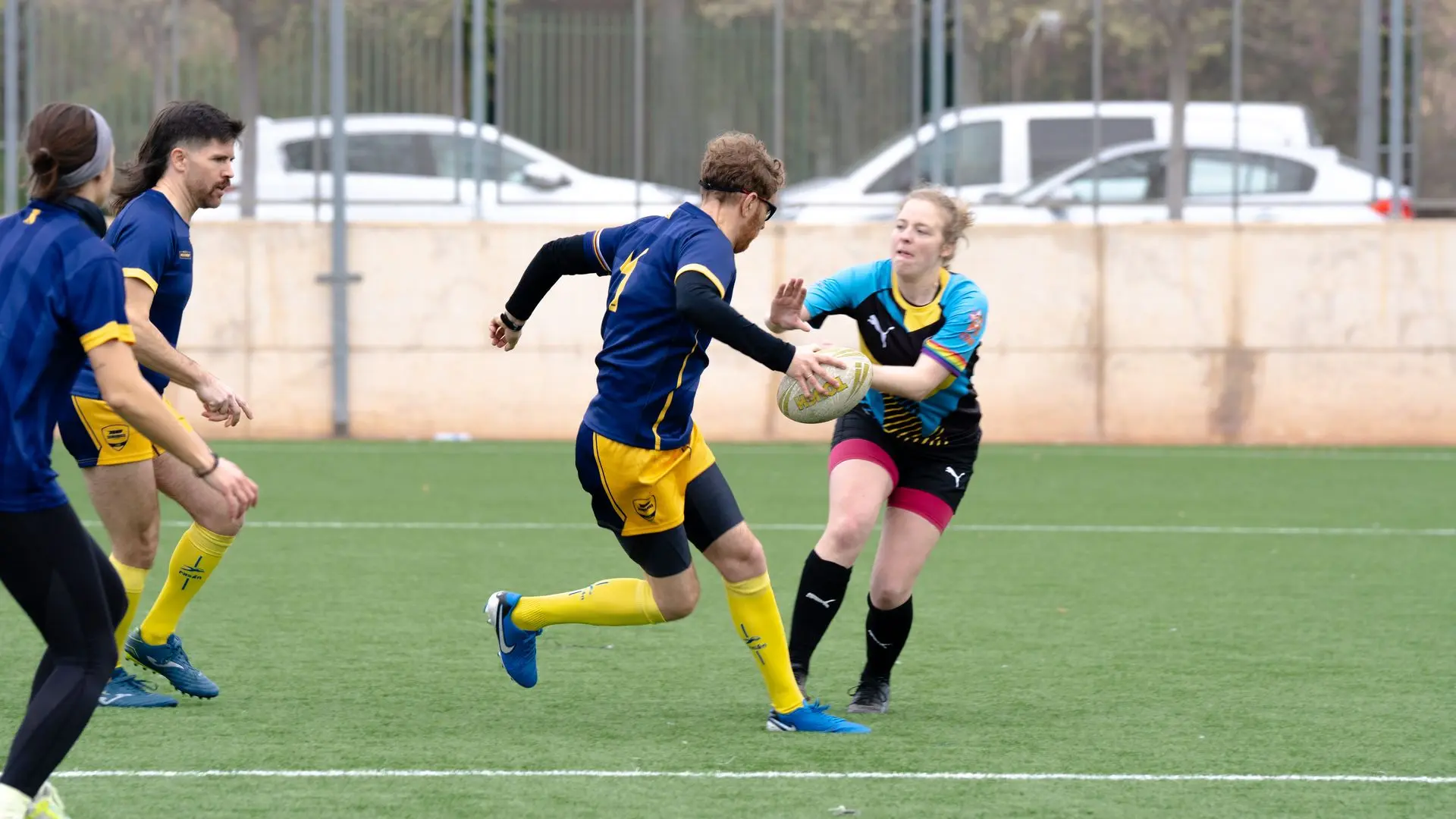 Comencemos el viernes, cuando todes madrugamos desde bien temprano para irnos a 2 horas en Ave y 4 en coche hasta Valencia con la intención de ir a un torneo en el que Touch y XV compartiríamos momentos, risas y cómo no: Ganar (home no). Algunos llegaron por la mañana y como buenos turistas madrileños en tierras valencianas decidieron ir por una paella y una horchata tontorrona. Un tercer tiempo improvisadísimo con el resto de equipos, dio pie a conocernos, ponernos cara y compartir momentos alegres y muchas charlas productivas. No hubo piques, no hubo ataques, no hubo golpes bajos (en absoluto), aunque ya se respiraba el ansia por el sábado, por jugar, por placar y por estar en el juego. Ya se pensaba en cómo jugar al día siguiente y qué técnicas utilizar. Y, por otro lado, nuestros brutanes (mitad Bruisers, mitad Titanes) pensando en cómo entender a los de Berlín en el campo y si jugarían en las posiciones en las que habían entrenado. La noche acaba con nuestra querida cena titánica y la categoría era… “Titanes Shore” en honor a la Valencia de los 2000 donde algunes titanes D-E-V-O-R-A-R-O-N con sus looks.